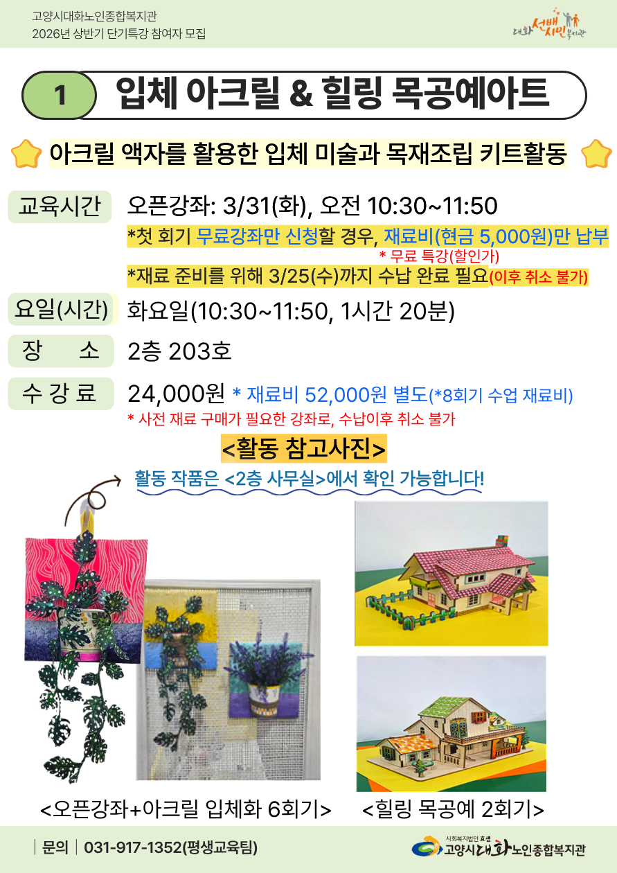 [모집] 상반기 단기특강 오픈강좌 안내(입체 아크릴&목공예 아트)